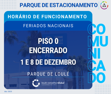 O Parque de Estacionamento Municipal de Loulé encontra-se em funcionamento e com o horário normal no dia feriado de 1 de novembro. Estacione comodamente a sua viatura no Parque de Estacionamento Municipal de Loulé.